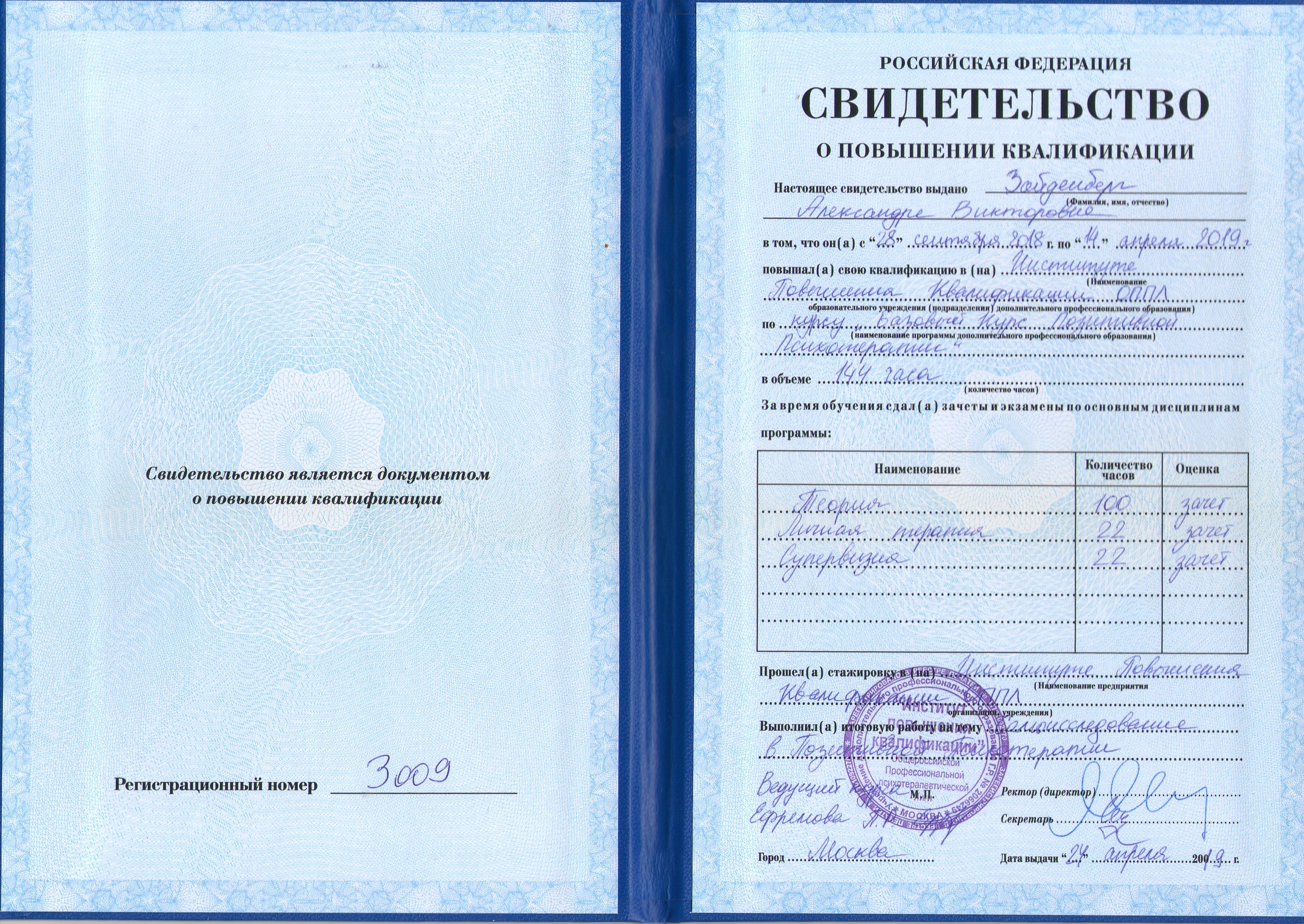 Свою практику постоянно подкрепляю обучением и повышением квалификации в Российском Союзе Психотерапевтов, где прохожу супервизии, теоретическое и практическое обучение.